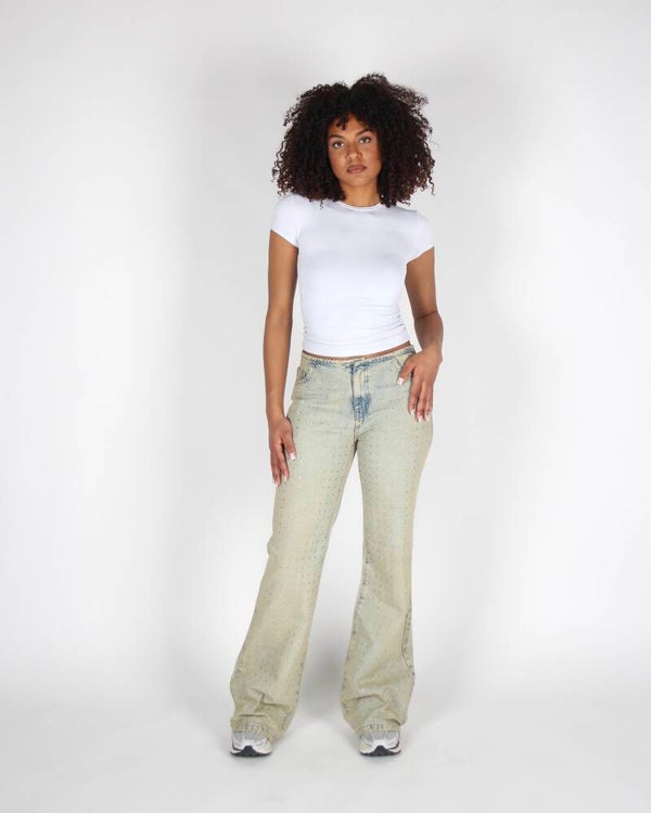 "GLITTER DETAILED LOW WAISTED JEANS"